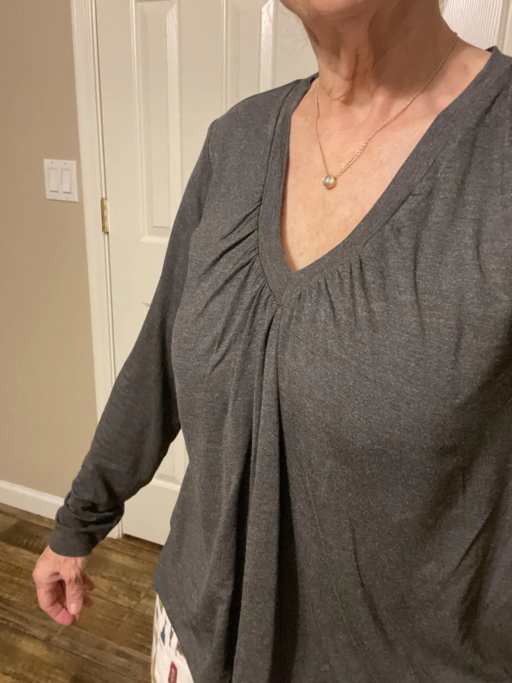 After a weekend away visiting my niece and her young family (wearing my “Eileen” top for a *very* early Easter morning egg hunt).. I flew home where it was cold and rainy and was able to unpack and get cozy in this charcoal gray Darci. So soft! Love love love this.